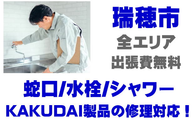 瑞穂市で水栓メーカーKAKUDAIの修理業者をお探しなら当社までお気軽にお問い合わせください。蛇口の水漏れ、シャワーの故障などカクダイ製に関するトラブルなら何でもご相談ください。