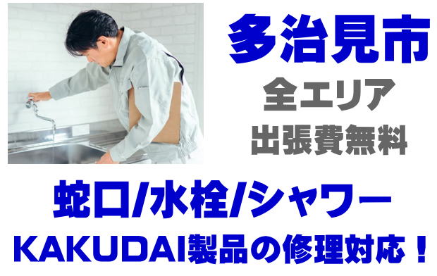 多治見市で水栓メーカーKAKUDAIの修理業者をお探しなら当社までお気軽にお問い合わせください。蛇口の水漏れ、シャワーの故障などカクダイ製に関するトラブルなら何でもご相談ください。